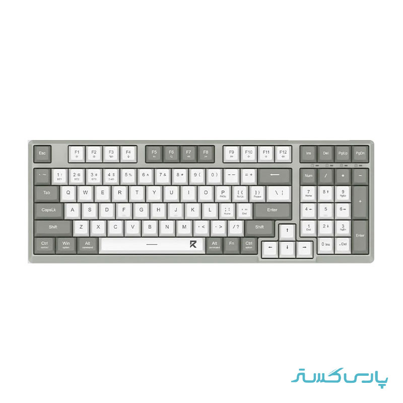 کیبورد بی سیم ردراگون مدل Redragon SCISSOR BK-7114WG؛ کیبورد بیسیم با دانگل USB و بلوتوث، 98 کلید، رنگ سفید-خاکستری، گارانتی تخت جمشید. مشخصات: نوع اتصال بیسیم، نوع رابط دانگل USB - بلوتوث، نورپردازی ندارد، کلیدهای نام-پد دارد، صفحه استراحت مچ ندارد، ابعاد کیبورد 24×136×382 میلیمتر، وزن 557 گرم میباشد